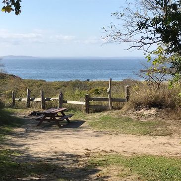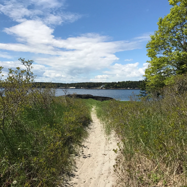 Several trails offer campers short hikes across the varied terrain of the island north of the main campground area. The Red and Blue trails hug the rocky coast, providing stunning views of the ocean. The Blue trail crosses Spring Beach and ends at Sailboat Beach. The Orange trail runs along the mostly wooded interior spine of the island before crossing Sailboat Beach and ending at Sand Dollar Beach. Spring Beach trail follows an old wagon route to the spring for which it is named. Two White Trails begin at Island Road and end at the coast, intersecting with the other trails at various points.